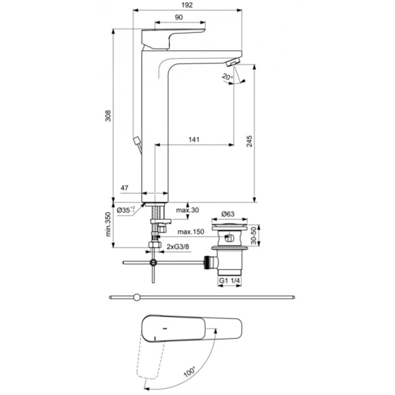 Крепление, Аэратор, Гибкая подводка, Донный клапан, CoolStart