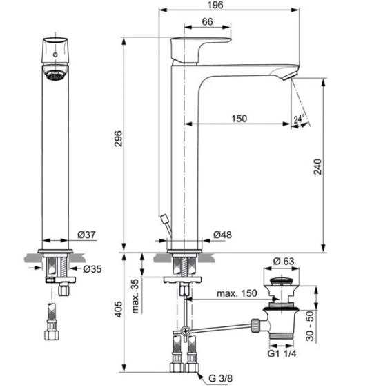 Крепление, Аэратор, Гибкая подводка, Донный клапан