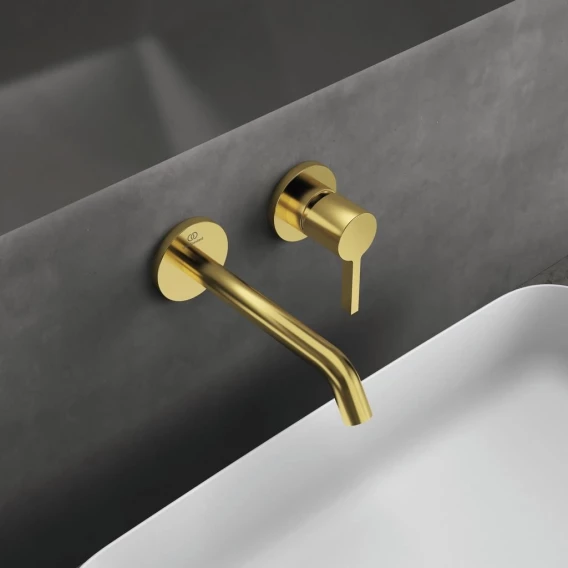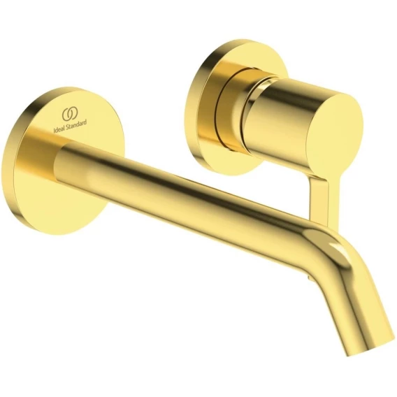 A7378A2 JOY Встраиваемый смеситель для умывальника, комплект №2 (внешняя часть),керамический картридж 28 мм, с функцией HWTC (ограничение максимальной температуры горячей воды), без функции CLICK,трубчатый излив 180 мм, круглые металлические накладки с логотипом Ideal Standard,металлическая рукоятка без индикаторов горячей / холодной воды,аэратор Caché M16,5x1 с ограничением потока 5 л/мин,для монтажа с комплектом №1 A1313NU (встраиваемая часть не входит в комплект),цвет - Brushed Gold матовое золото