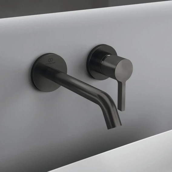 A7378A5 JOY Встраиваемый смеситель для умывальника комплект №2 (внешняя часть),керамический картридж 28 мм, с функцией HWTC (ограничение максимальной температуры горячей воды), без функции CLICK,трубчатый излив 180 мм, круглые металлические накладки с логотипом Ideal Standard,металлическая рукоятка без индикаторов горячей / холодной воды,аэратор Caché M16,5x1 с ограничением потока 5 л/мин,для монтажа с комплектом №1 A1313NU (встраиваемая часть не входит в комплект),Magnetic Grey / Магнит