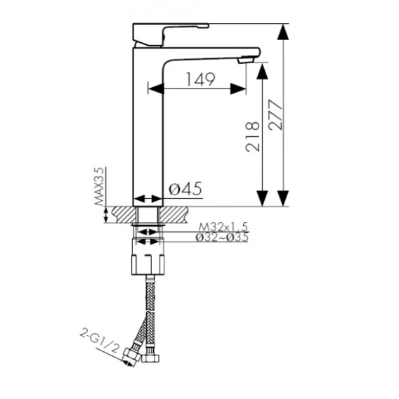 Высота излива 21.8 см