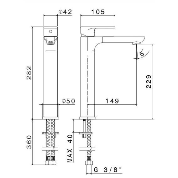Смеситель для раковины Paini Nove 09CR205LL без донного клапана, хром
