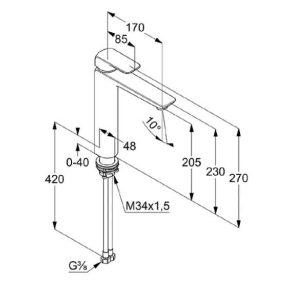 Смеситель для раковины Kludi Ameo 412960575 без донного клапана, хром