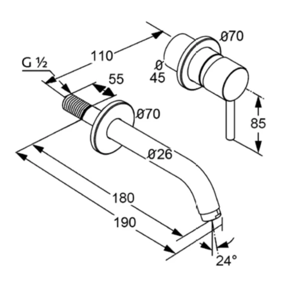 • длина излива 180 мм