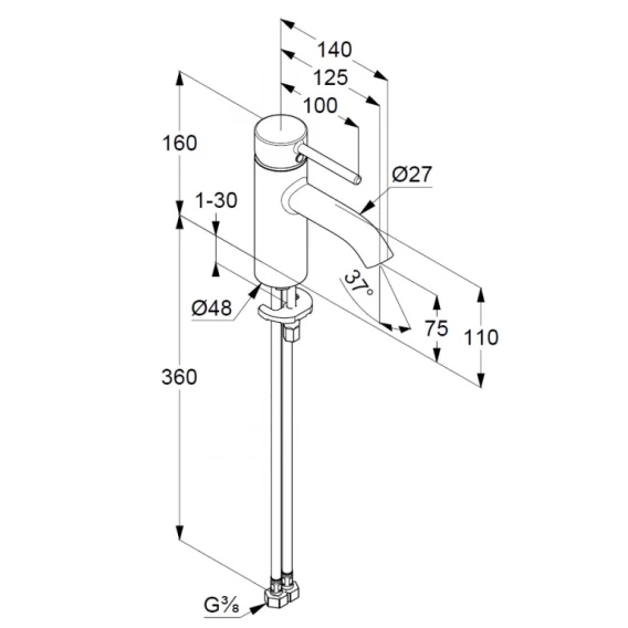 Смеситель для раковины Kludi Bozz 382723976 без донного клапана, черный матовый