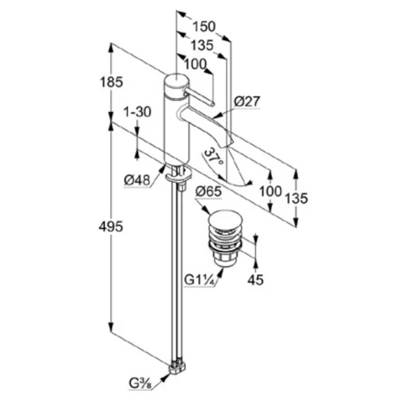 Крепление, Аэратор, Гибкая подводка, Донный клапан