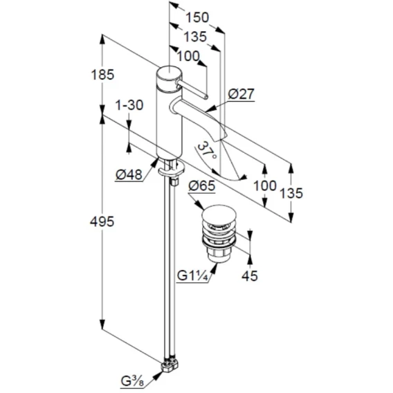 Крепление, Аэратор, Гибкая подводка, Донный клапан