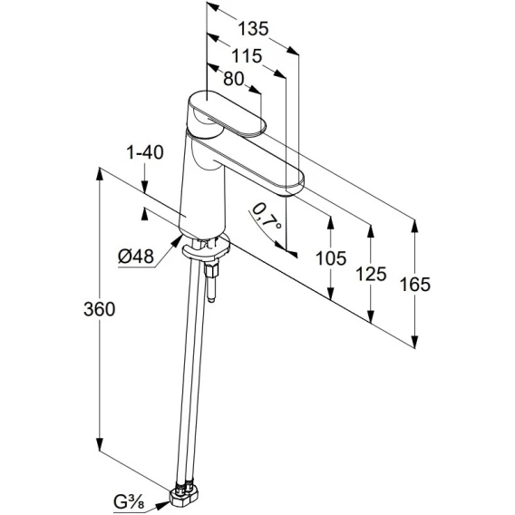 Смеситель для раковины Kludi Louva 242823975 без донного клапана, черный матовый