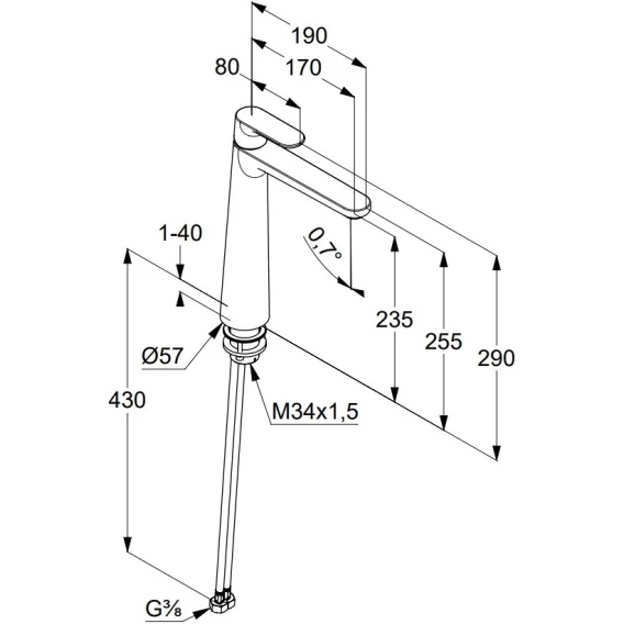Длина излива 17 см