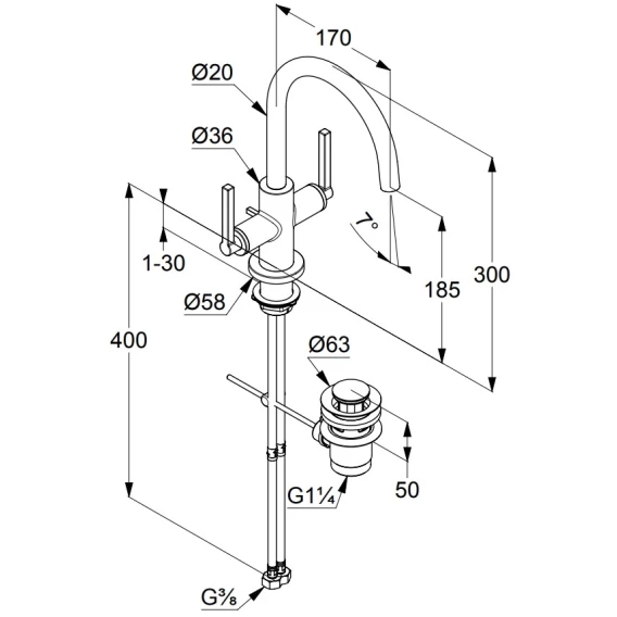 Крепление, Аэратор, Гибкая подводка, Донный клапан