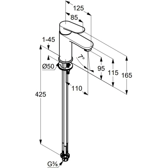 Смеситель для раковины Kludi X1 322820575 без донного клапана, хром