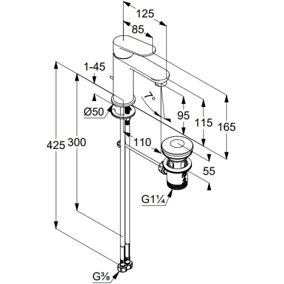 Смеситель для раковины Kludi X1 322883975 с донным клапаном, черный матовый