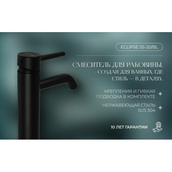 Смеситель для раковины Knotlor Eclipse SS-20/BL черный матовый