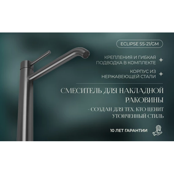 Смеситель для раковины Knotlor Eclipse SS-21/GM вороненая сталь