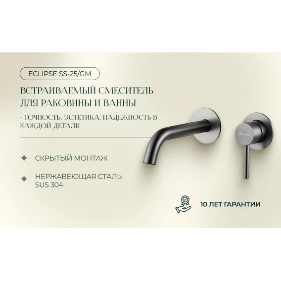 Смеситель для раковины Knotlor Eclipse SS-25/GM встраиваемый, вороненая сталь