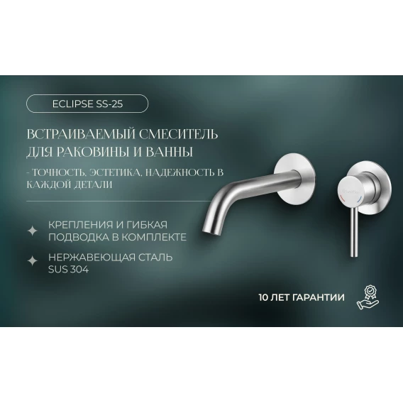 Смеситель для раковины Knotlor Eclipse SS-25 встраиваемый, нержавеющая сталь