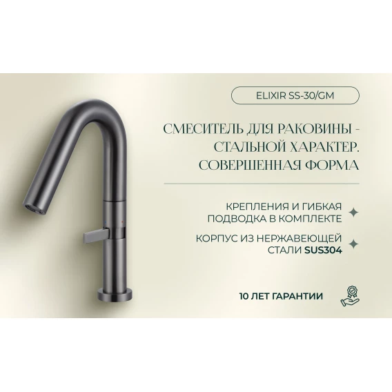 Смеситель для раковины Knotlor Elixir SS-30/GM вороненая сталь