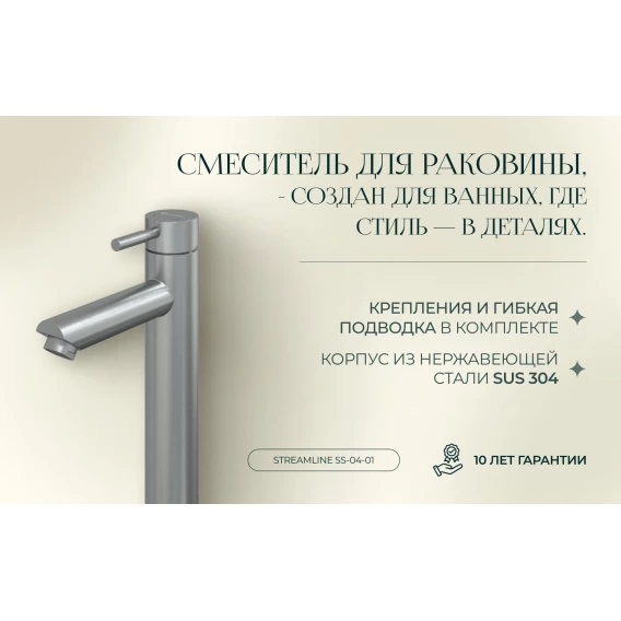 Смеситель для раковины Knotlor Streamline SS-04/01 нержавеющая сталь