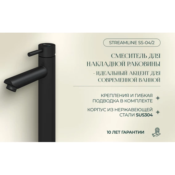 Смеситель для раковины Knotlor Streamline SS-04/02 черный матовый