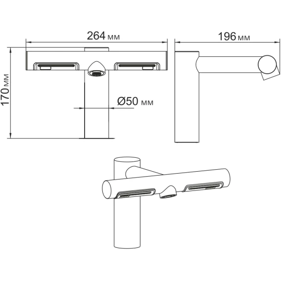 • Комплектация: смеситель, блок управления, терморегулятор с обратными клапанами