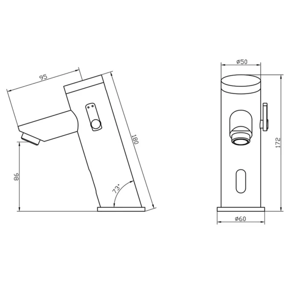 Продуманная конструкция с идеальным наклоном. Корпус смесителя изготовлен из высококачественного сплава цинка. Точная обработка поверхности, полировка, покрытие никелем и хромирование, гарантирует долгий срок службы. Ручка регулировки температуры воды на корпусе смесителя.Внутри установлен бистабильный соленоидный клапан B06, конструкция оригинальная. Картридж изготовлен из высокопрочного нейлонового стекловолокна PPA с надежной конструкцией. Снаружи подсоединенный аккумуляторный отсек для удобного переключения между питанием от сети и от батареек. Автоматическое отключение после 1 минуты использования.Инфракрасный сенсор. Технология энергосбережения для увеличения срока службы элементов питания. Водонепроницаемое, антивандальное окошко сенсора. Батарея стандартного типа АА.