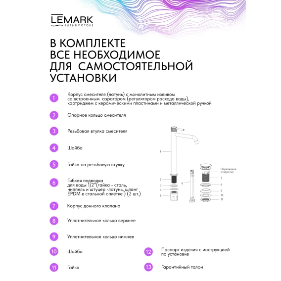 Крепление, Аэратор, Гибкая подводка, Донный клапан