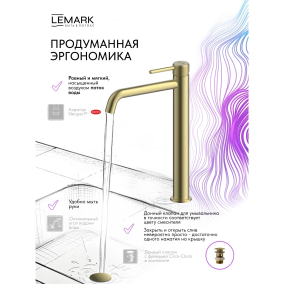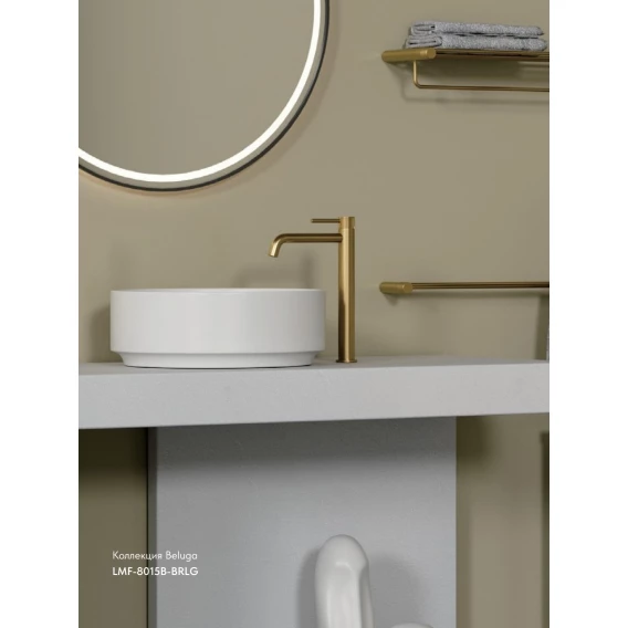 Смеситель для раковины Lemark Beluga LMF-8015B-BRLG с донным клапаном, светлое золото матовый