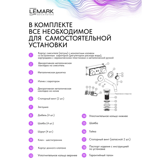 Аэратор, Донный клапан, Скрытая монтажная часть