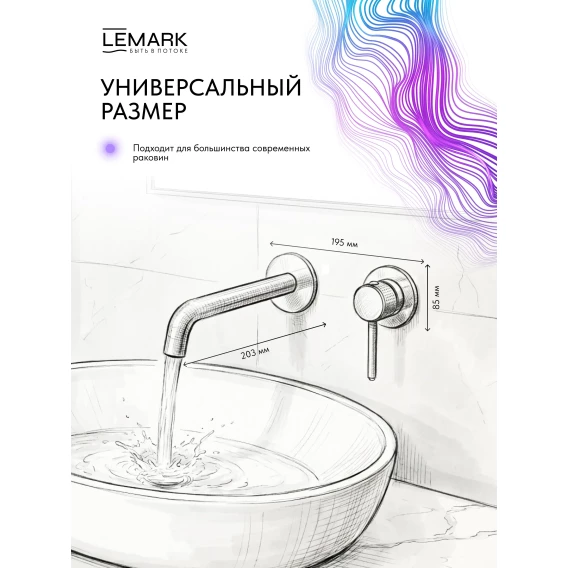 Смеситель для раковины Lemark Beluga LMF-8033B-BRLG встраиваемый, с донным клапаном, светлое золото матовый