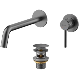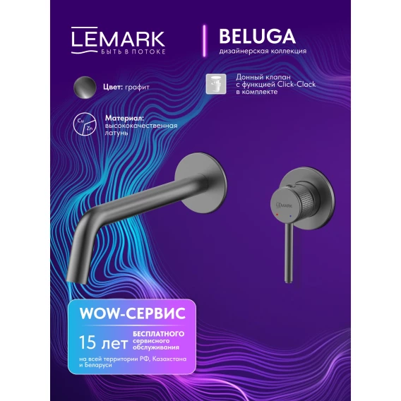 Смеситель для раковины Lemark Beluga LMF-8033B-GM встраиваемый, с донным клапаном, графит матовый