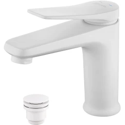 Смеситель для раковины Lemark Bronx LM3706MW с донным клапаном, белый матовый