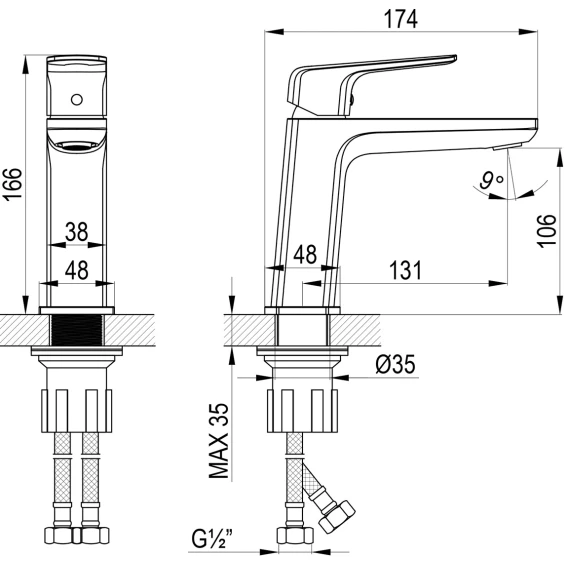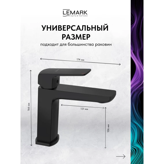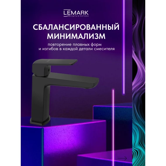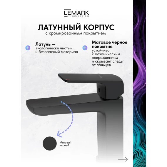 Смеситель для раковины Lemark Hosta LM12306BL без донного клапана, черный матовый
