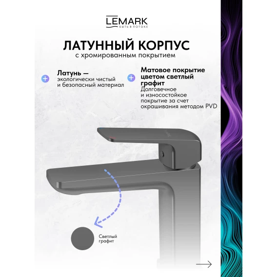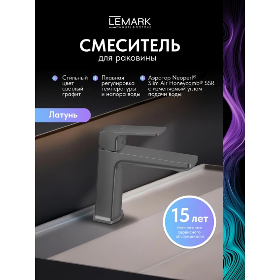Смеситель для раковины Lemark Hosta LM12306LGM без донного клапана, графит матовый