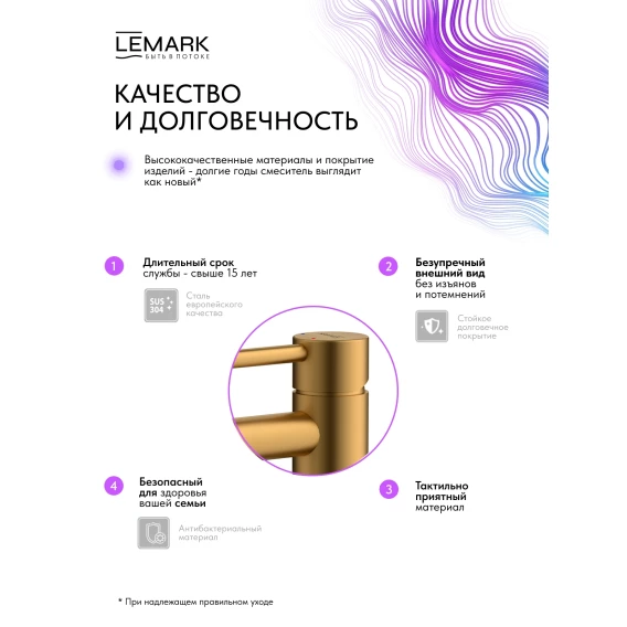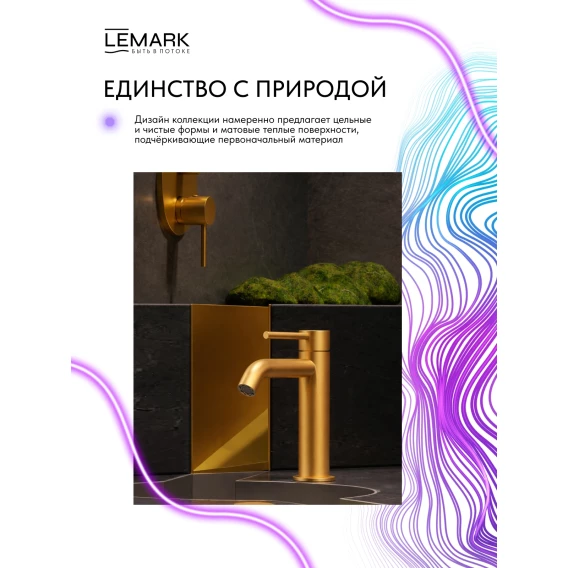 Смеситель для раковины Lemark Kalina LMF-2112S-BRG без донного клапана, золотой матовый