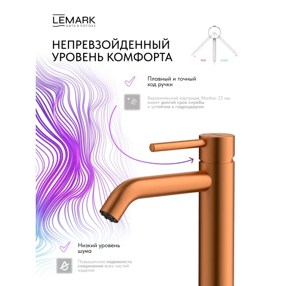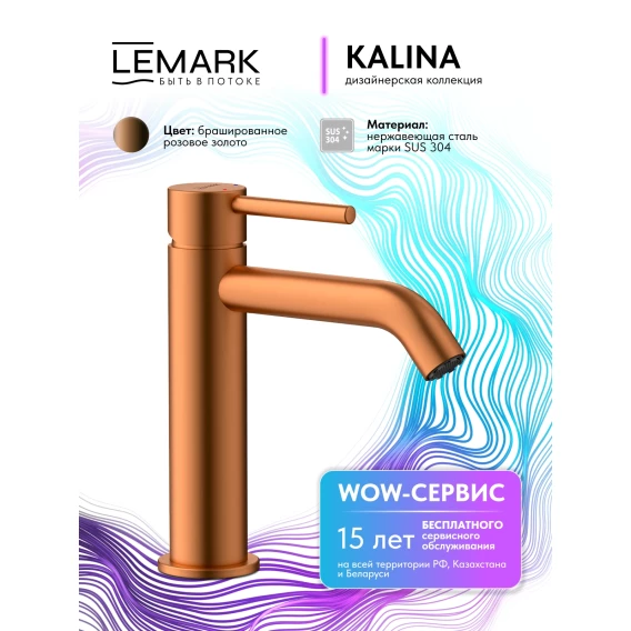 Смеситель для раковины Lemark Kalina LMF-2112S-BRRG без донного клапана, розовое золото матовый