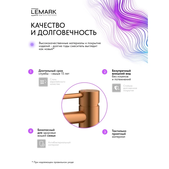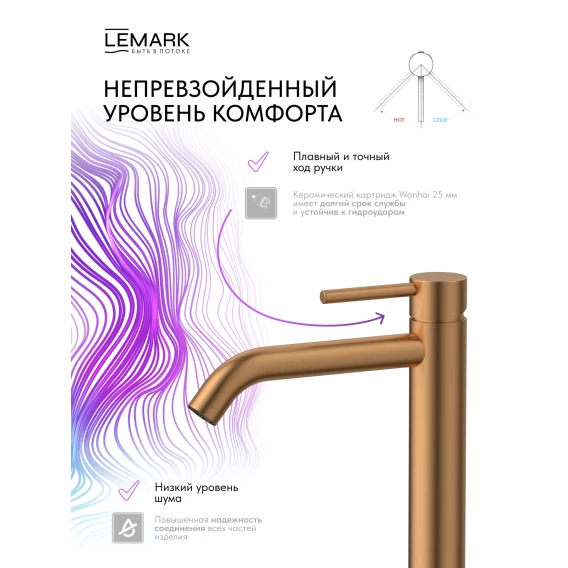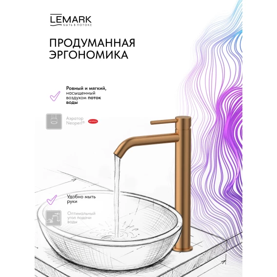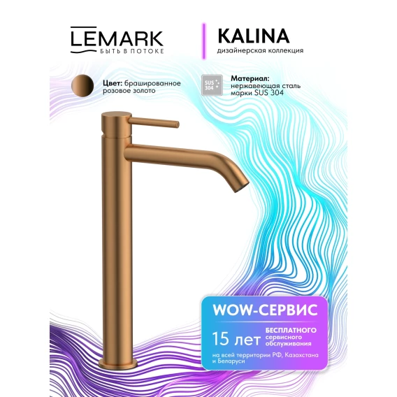 Смеситель для раковины Lemark Kalina LMF-2115S-BRRG без донного клапана, розовое золото матовый