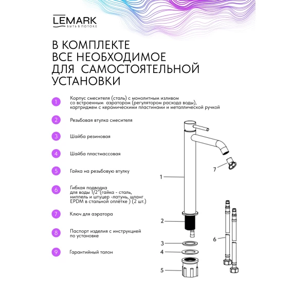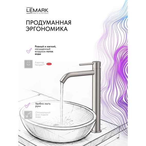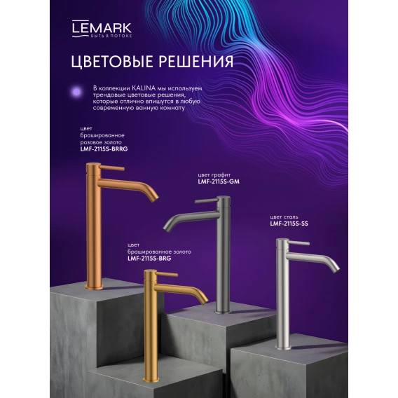 Смеситель для раковины Lemark Kalina LMF-2115S-SS без донного клапана, нержавеющая сталь