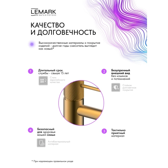 Смеситель для раковины Lemark Karelia LMF-2012S-BRG без донного клапана, золотой матовый
