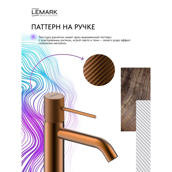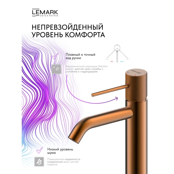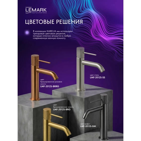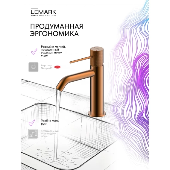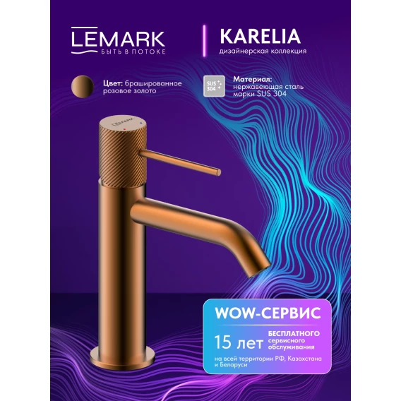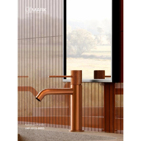 Смеситель для раковины Lemark Karelia LMF-2012S-BRRG без донного клапана, розовое золото матовый