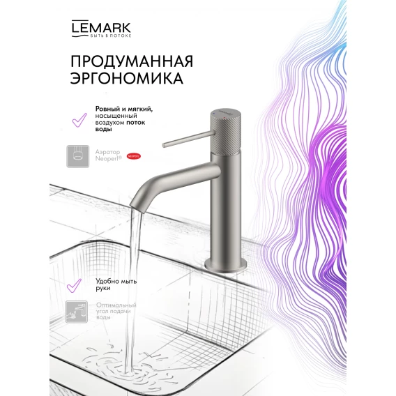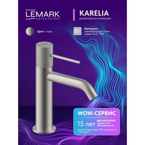 Смеситель для раковины Lemark Karelia LMF-2012S-SS без донного клапана, нержавеющая сталь
