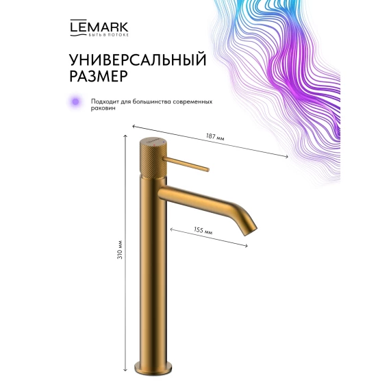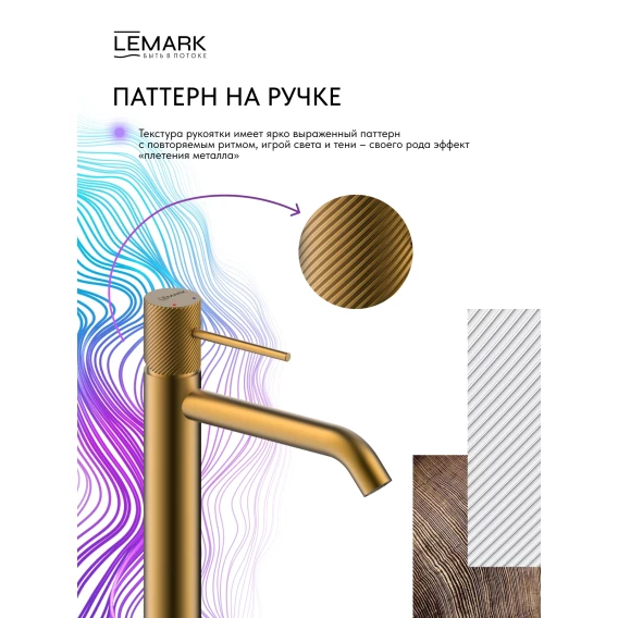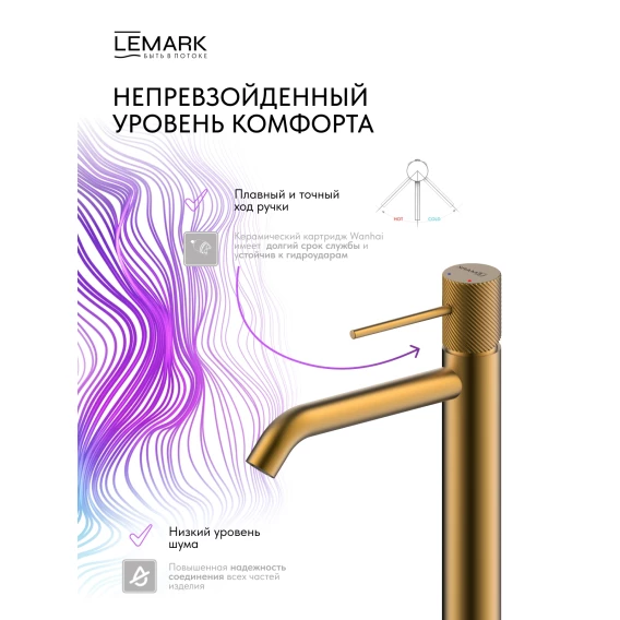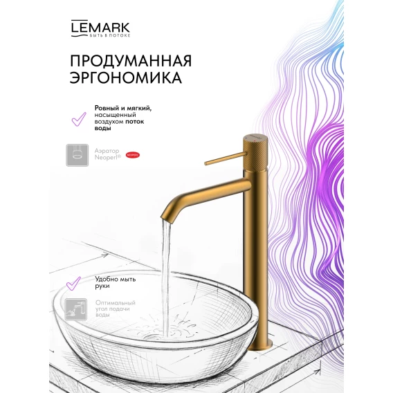 Смеситель для раковины Lemark Karelia LMF-2015S-BRG без донного клапана, золотой матовый