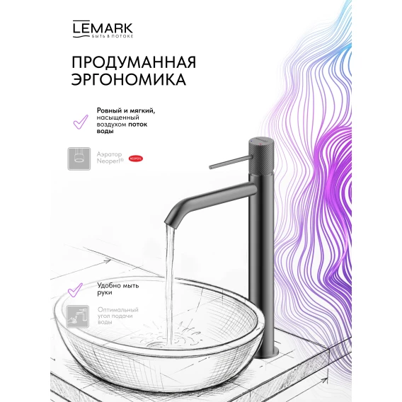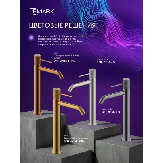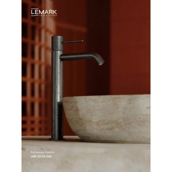 Смеситель для раковины Lemark Karelia LMF-2015S-GM без донного клапана, графит матовый