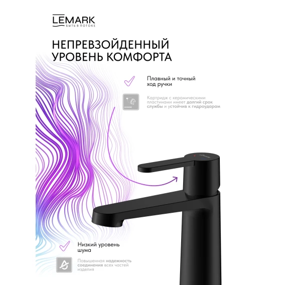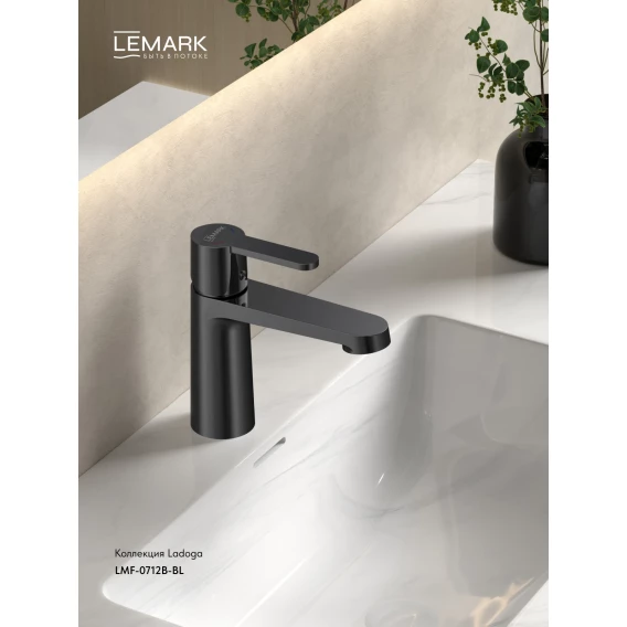 Смеситель для раковины Lemark Ladoga LMF-0712B-BL без донного клапана, черный матовый