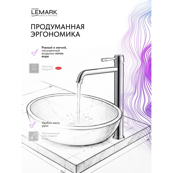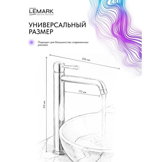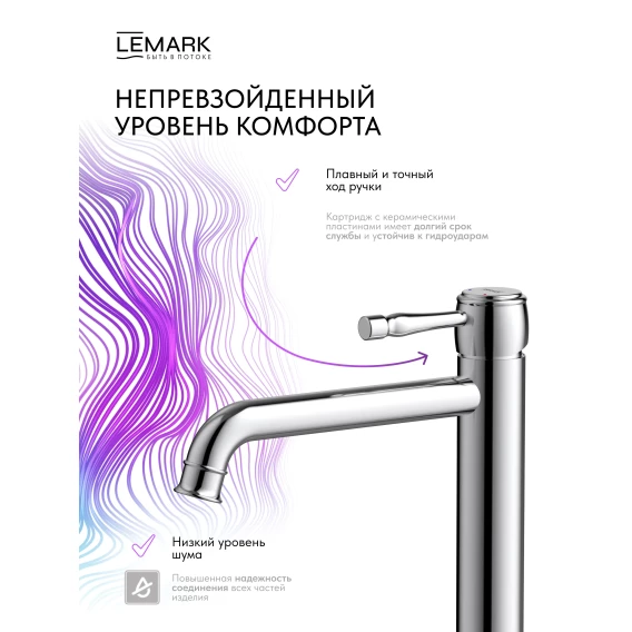 Смеситель для раковины Lemark Pushkin LMF-8615B-C без донного клапана, хром