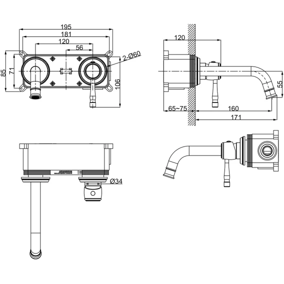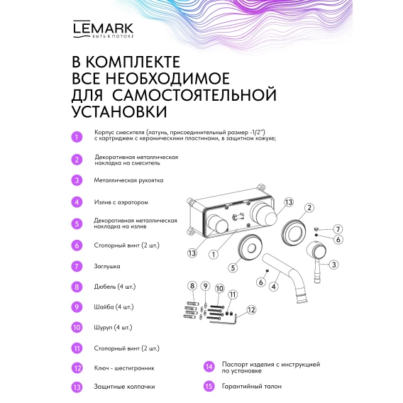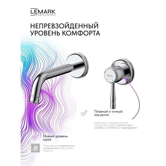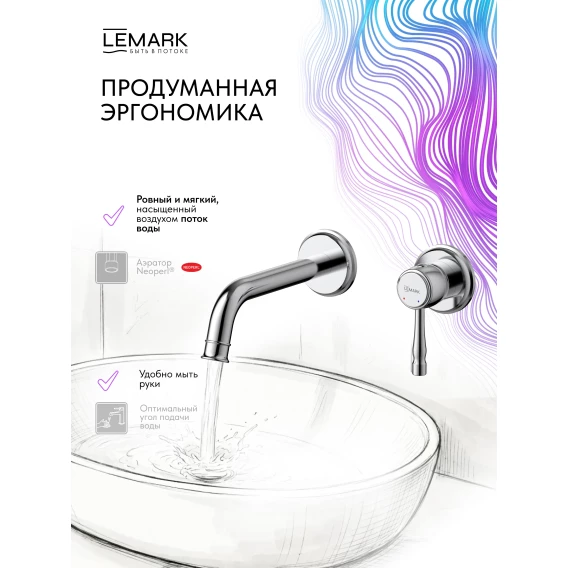 Смеситель для раковины Lemark Pushkin LMF-8633B-C встраиваемый, без донного клапана, хром