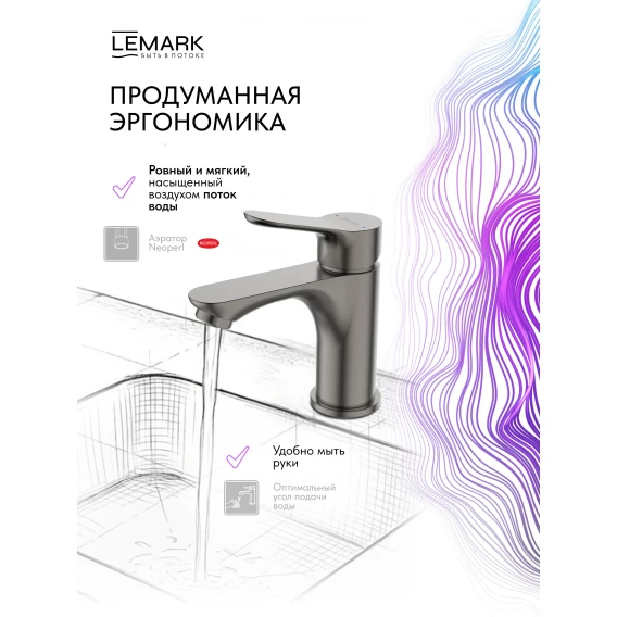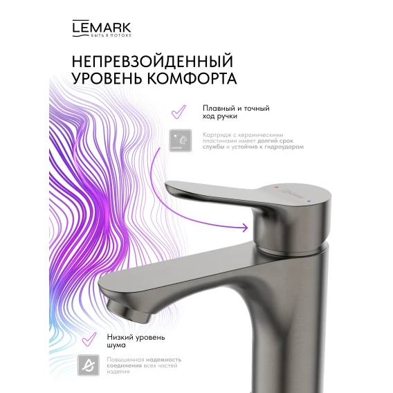 Смеситель для раковины Lemark Siberia LMF-7012B-GM без донного клапана, графит матовый