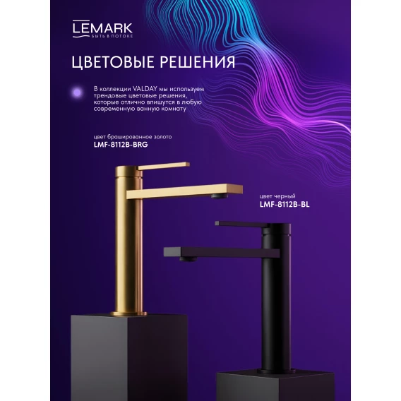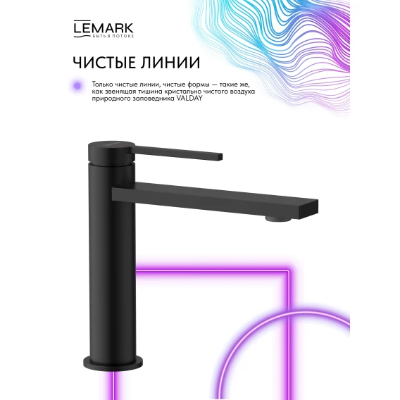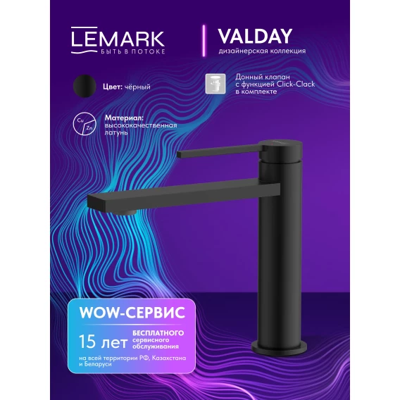Смеситель для раковины Lemark Valday LMF-8112B-BL с донным клапаном, черный матовый