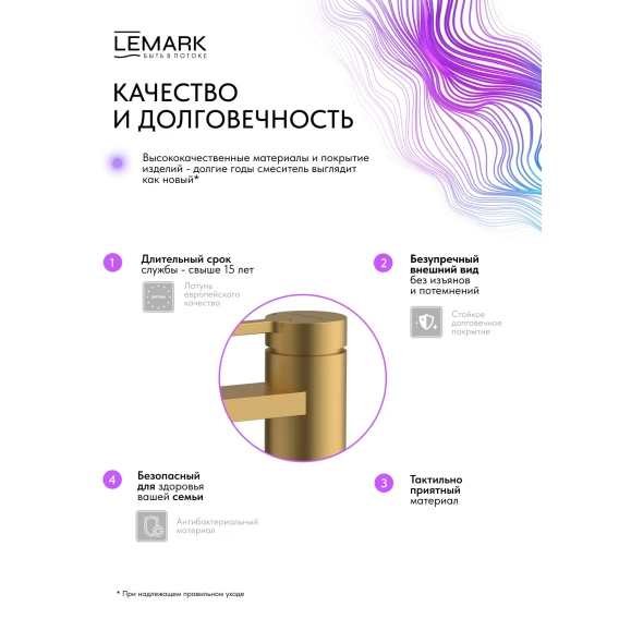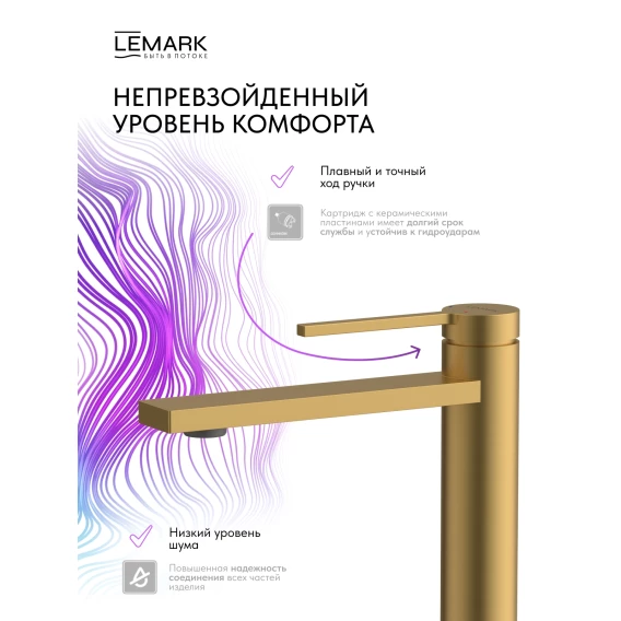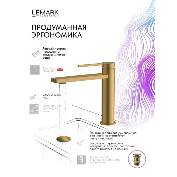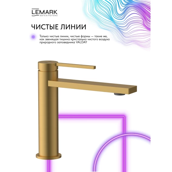 Смеситель для раковины Lemark Valday LMF-8112B-BRG с донным клапаном, золотой матовый