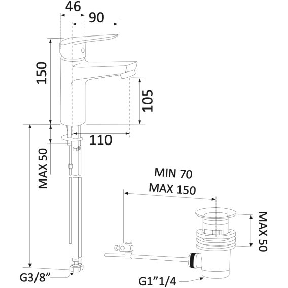 Крепление, Аэратор, Гибкая подводка, Донный клапан