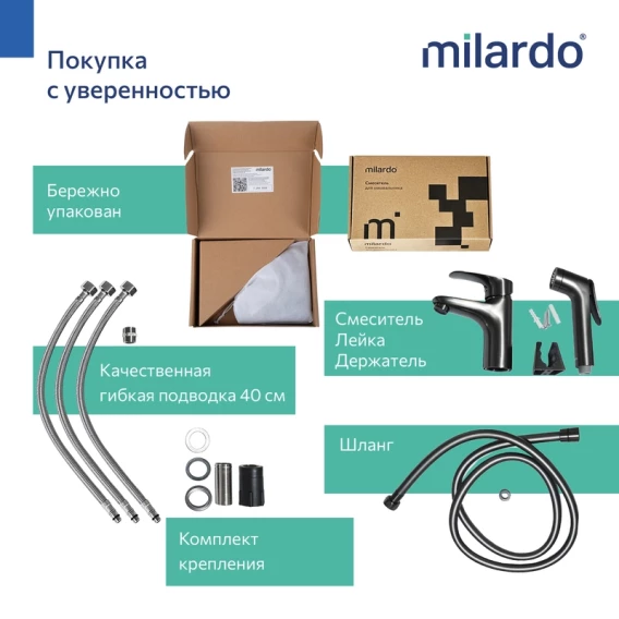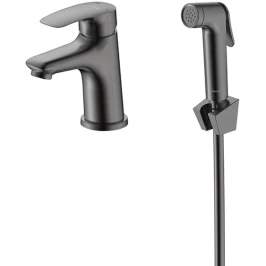 Смеситель для раковины Milardo Rora RORGM01M08 с гигиеническим душем, графит матовый